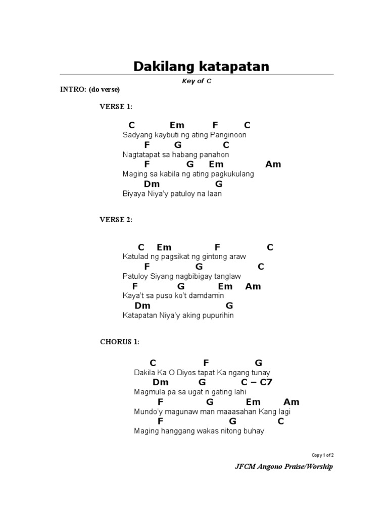 D Fm Bm Kay buti-buti mo Panginoon G A Sa lahat ng oras G A Sa bawat araw D Fm Bm Ikay laging tapat kung magmahal G D Ang iyong kaaway G A D Magpawalang-hanggan G A D Pinupuri sinasamba kita G A D Dakilang Diyos at Panginoon G A Tunay ngang ikay walang katulad Fm Bm. Jun 06 2018 Verse D AC Bm A Kay buti-buti mo Panginoon G A Sa lahat ng oras sa bawat araw D AC Bm A Ikay laging tapat kung magmahal G Ang Iyong kaawaan A D D7 Ay magpawalang-hanggan Chorus G A D Bm. D-Bm-Em-Asus-A D Bm Katapatan Mo Oh Dios tunay at dakila Em Asus-A Ang pag-ibig Moy wagas at walang kapantay D Am-D7 G Gm Sa aking puso sa aking buhay papurit pagsambay iaalay D Bm Em Asus-A D A D7 Bukas noon ngayon magpakailanman luwalhatiin ka Koro.