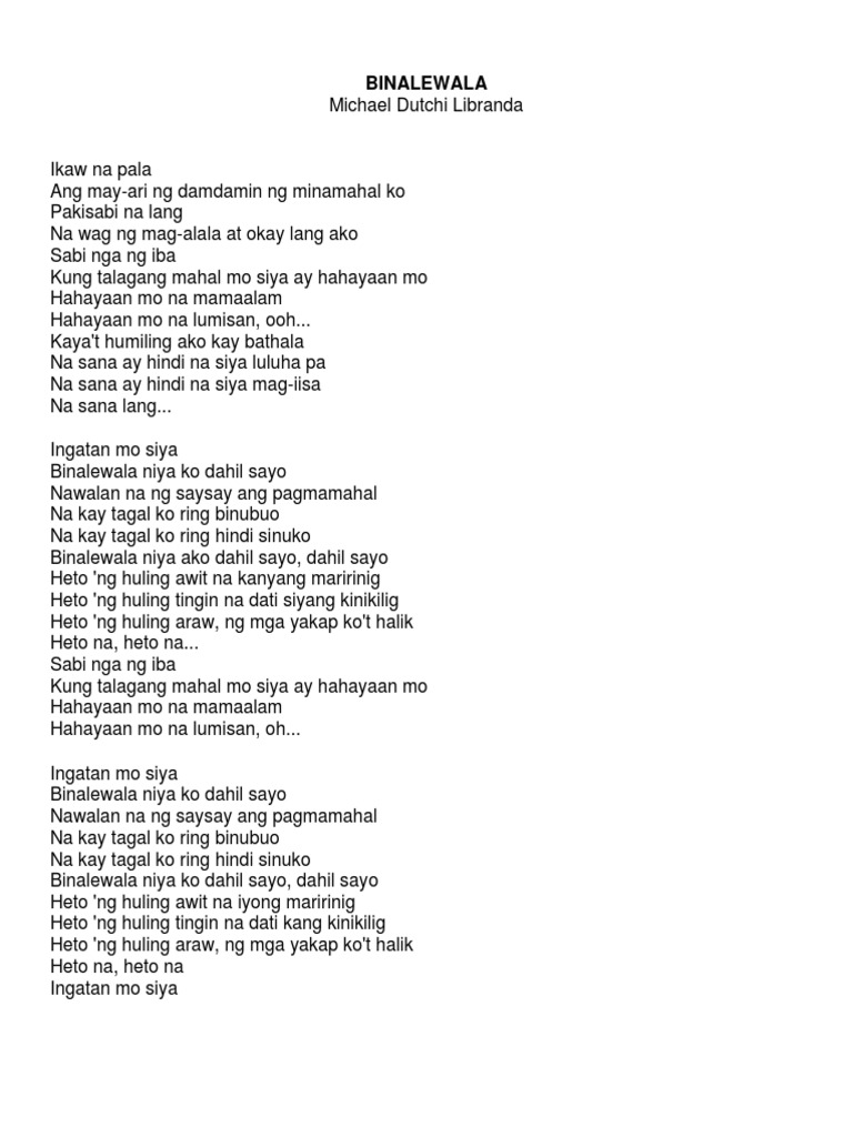 Lyrics Art Binalewala Michael Dutchi Libranda Facebook