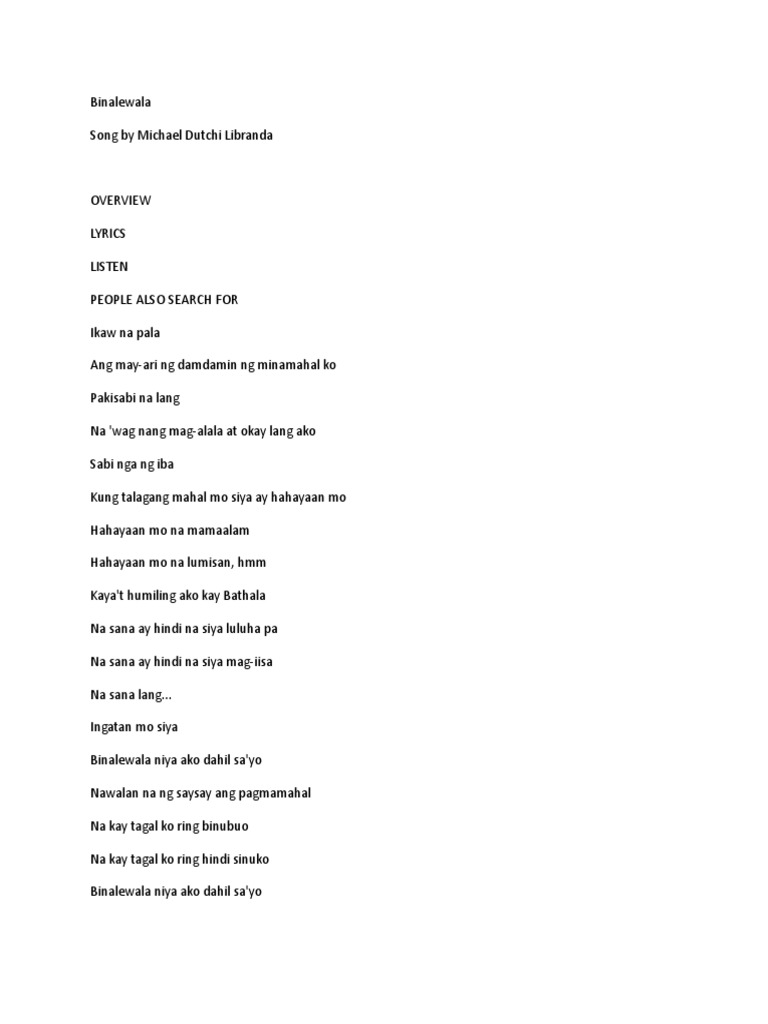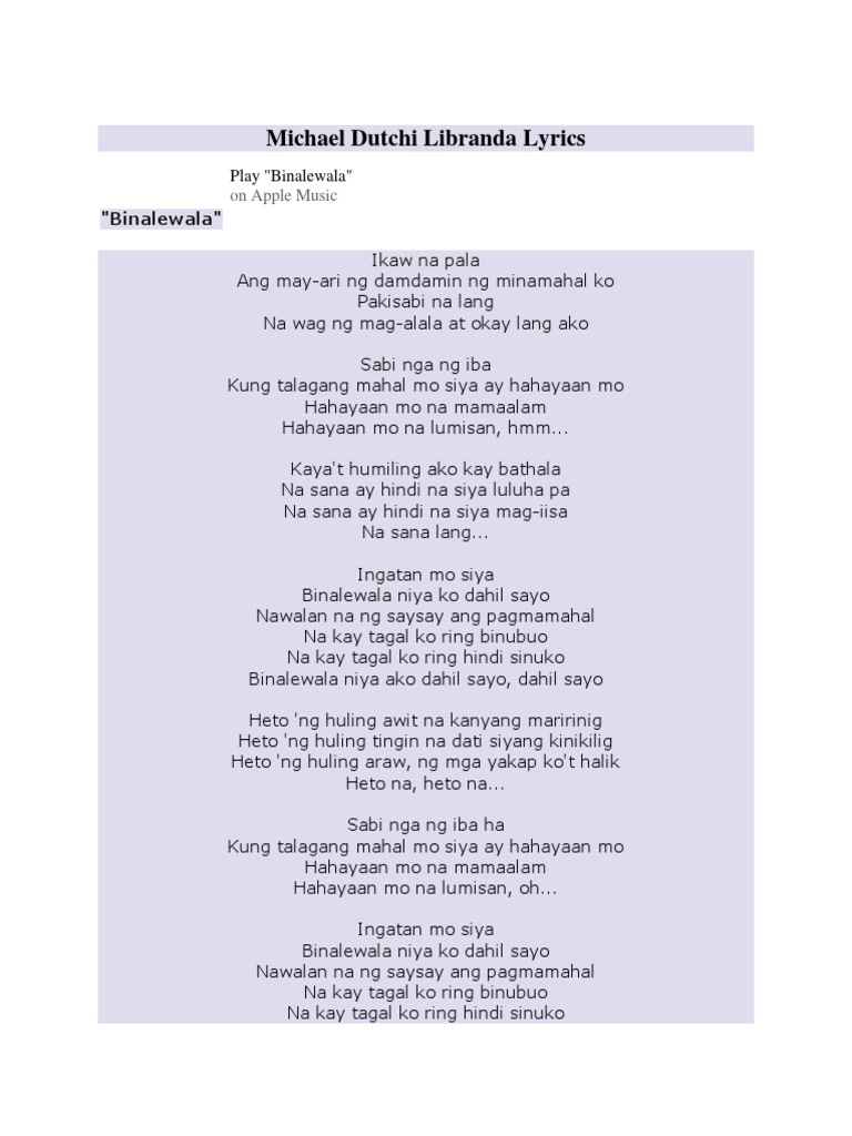 Michael Dutchi Libranda Binalewala Lyrics Lyrics At Azlyrics Com Pdf