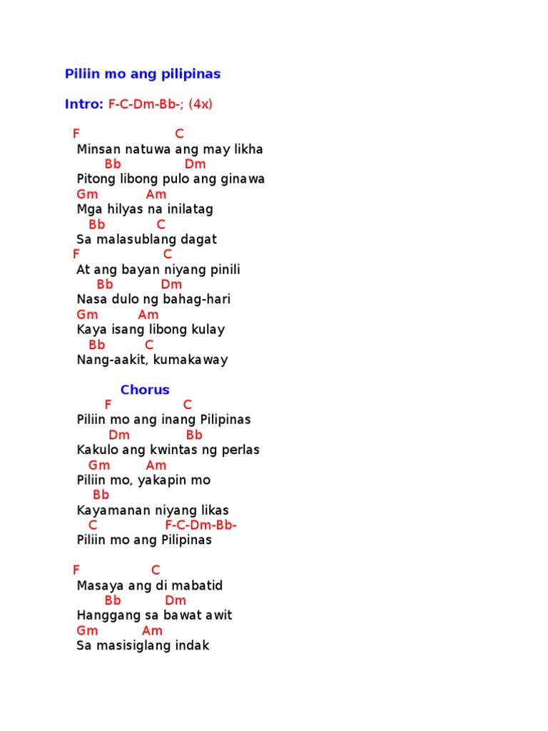 Piliin mo ang inang Pilipinas choose Philippines Kakulo ang kwintas ng perlas Piliin mo yakapin mo Kayamanan nyang likas Piliin mo ang Pilipinas Piliin Mo ang Pilipinas Piliin mo ang Pilipinasext. Learn the full song lyrics at MetroLyrics. Piliin mo rin ang Pilipinas Kapuluang kwintas ng perlas Piliin mo yakapin mo.