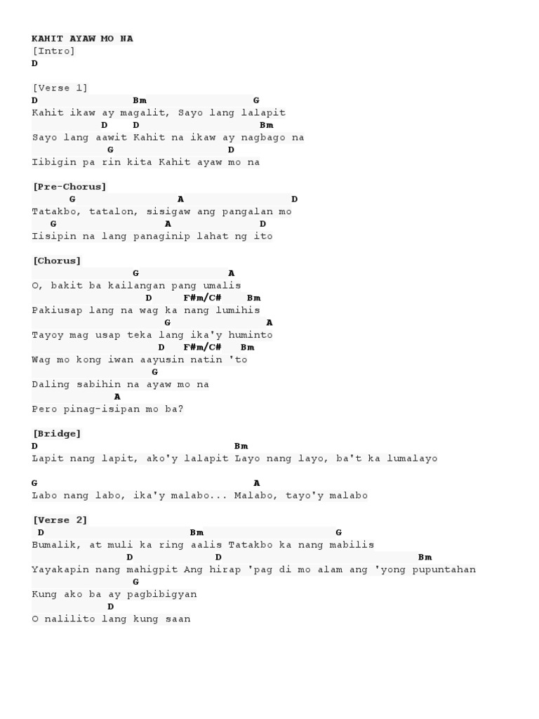 Last updated on 02062014. Chorus D G Sabihin mo na kung anong gusto mo Fm Em A7 Kahit anoy gagawin para lamang sayo D Sabihin mo na G Fm Em A7 Kung papano mo mapapatawad. Believe Music on behalf of Universal Records.