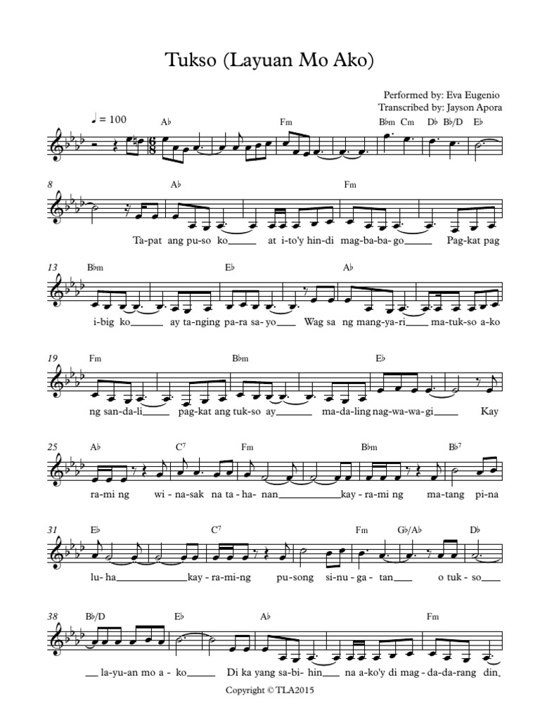 Nov 03 2018 Tukso layuan mo ako. Aug 01 2019 There is no strumming pattern for this song yet.