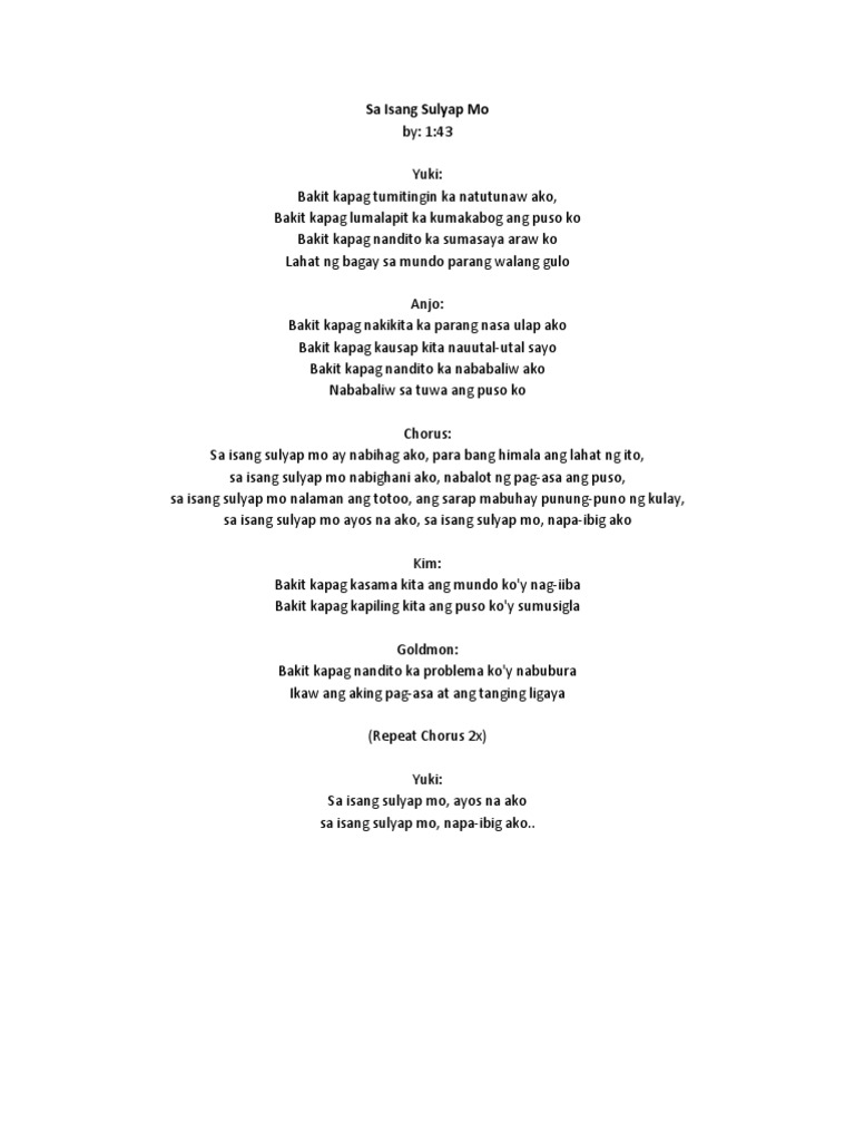 Oct 19 2017 sa isang sulyap mo english lyrics. The latest single of OPM Pop Heartthrobs 143 one forty-three composed of Anjo Resurreccion Goldmon Aqui. 118 Dustang kamatayan ang bihis mong bayad.